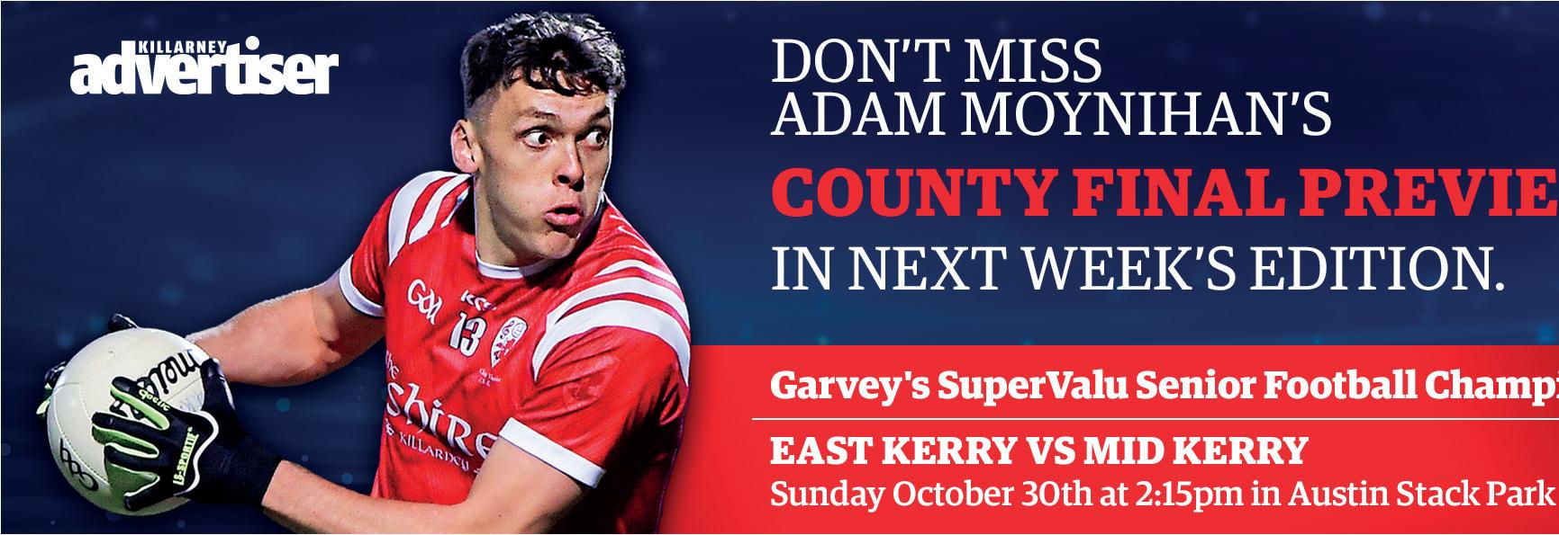 EAST KERRY: Well done to East Kerry and the Kilcummin contingent of Paul O’Shea, Kieran Murphy, Philip O’Leary, Dara O’Callaghan and selector Seanie O’Leary who have qualified for the county final against Mid-Kerry with their win over Dingle.