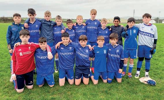 Pictured is the victorious Mastergeeha Under 12s team after defeating Killavilla in the SFAI National Cup. Man of the Match, Centre Forward Olivier Stachowiak, netted a hat-trick to secure the 3-1 win. The team’s strong performance was anchored by Central Midfielders Ronan O’Neill and Sean Breen, Right Winger Dara O’Keeffe, Left Winger and Captain Dara Burchill, and Defenders Left Back Aidan McGuire and Right Back Conor McCarthy. Other key players included Right Winger Mathew Cahill and Centre Forward Thomas O’Sullivan
