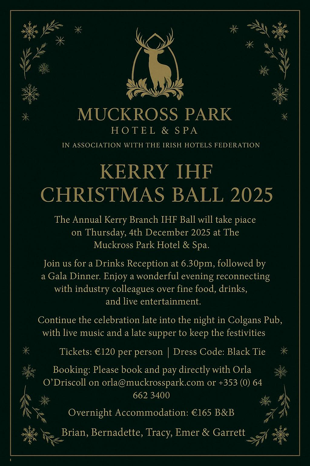 The Kerry Stars will operate the cloakroom, the Rise & Shine Trust will host a raffle, and the Kerry Hospice Foundation will have Christmas cards for sale. Music on the night will be provided by Mike Neeson.