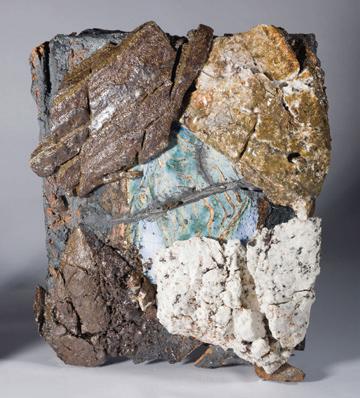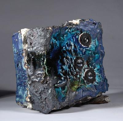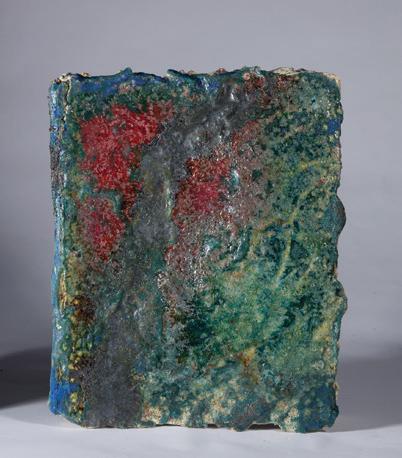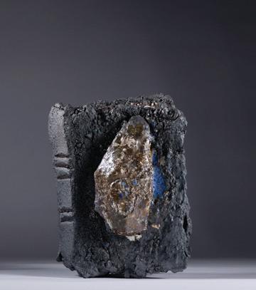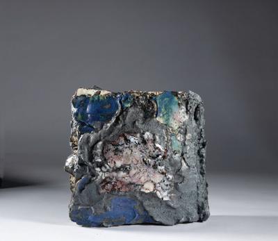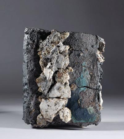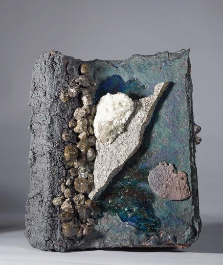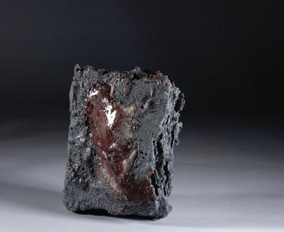 Danish born ceramic artist Lotte Glob (b 1944) lives and works on her Sculpture Croft by Loch Eribol, surrounded by the rugged Northwest Highlands. On long hikes into the mountains Glob gathers rocks and sediments which she combines with different clays, sculpting and firing them in a process ‘similar to the landscape’s volcanic origins.’