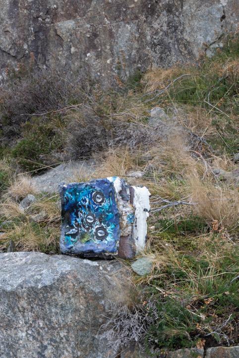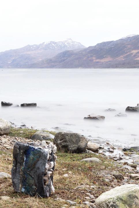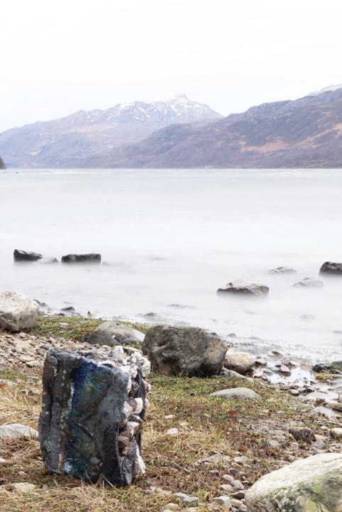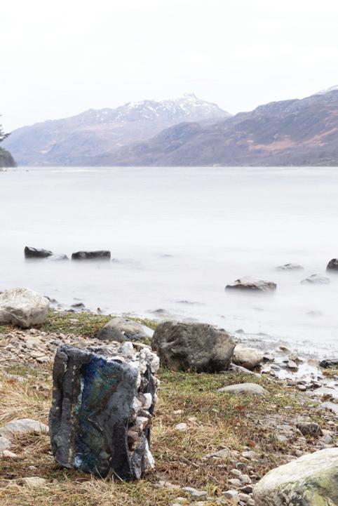 She has also climbed hills, swam, talked to rocks and left work in her beloved landscape - a rockhopper on Fionaven and floating stones in lochs that few trek to - offerings given back to the land. It is no surprise to find that a band of loyal devotees from all walks of life and countries have discovered Lotte’s work and followed her on this journey.