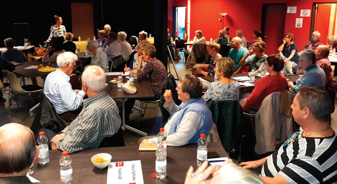 “Het leven wordt makkelijker met apps als Itsme” Leerlingen van de technische school Don Bosco maken je weg wijs op je smartphone, tablet of laptop. Deelnemers krijgen een korte toelichting door Evita Vanden Bossche (44) Antwerpen.be-centrum)(webpunt over het thema ‘Hoe raadpleeg ik mijn eigen dossier in apps?’. “Sinds de coronapandemie is het leven bijna ondenkbaar zon der apps. Om mee te kunnen in deze maatschappij is het be langrijk om in te stappen in de digitale wereld om je gezond heidsdossier na te kijken, zoals bijvoorbeeld het resultaat van een bloedtest of je laatste vacci natieprik. Om die zaken snel te regelen installeren we Itsme, je digitale identiteit in een bevei ligde app. Die maakt het leven makkelijker en zorgt ervoor dat je vanuit je eigen woning al veel online kan doen. In de les word je ingedeeld in kleine groepjes en ontdek je de mogelijkheden op je eigen toestel. Alles wordt stap voor stap uitgelegd. Er is geen voorkennis nodig.”