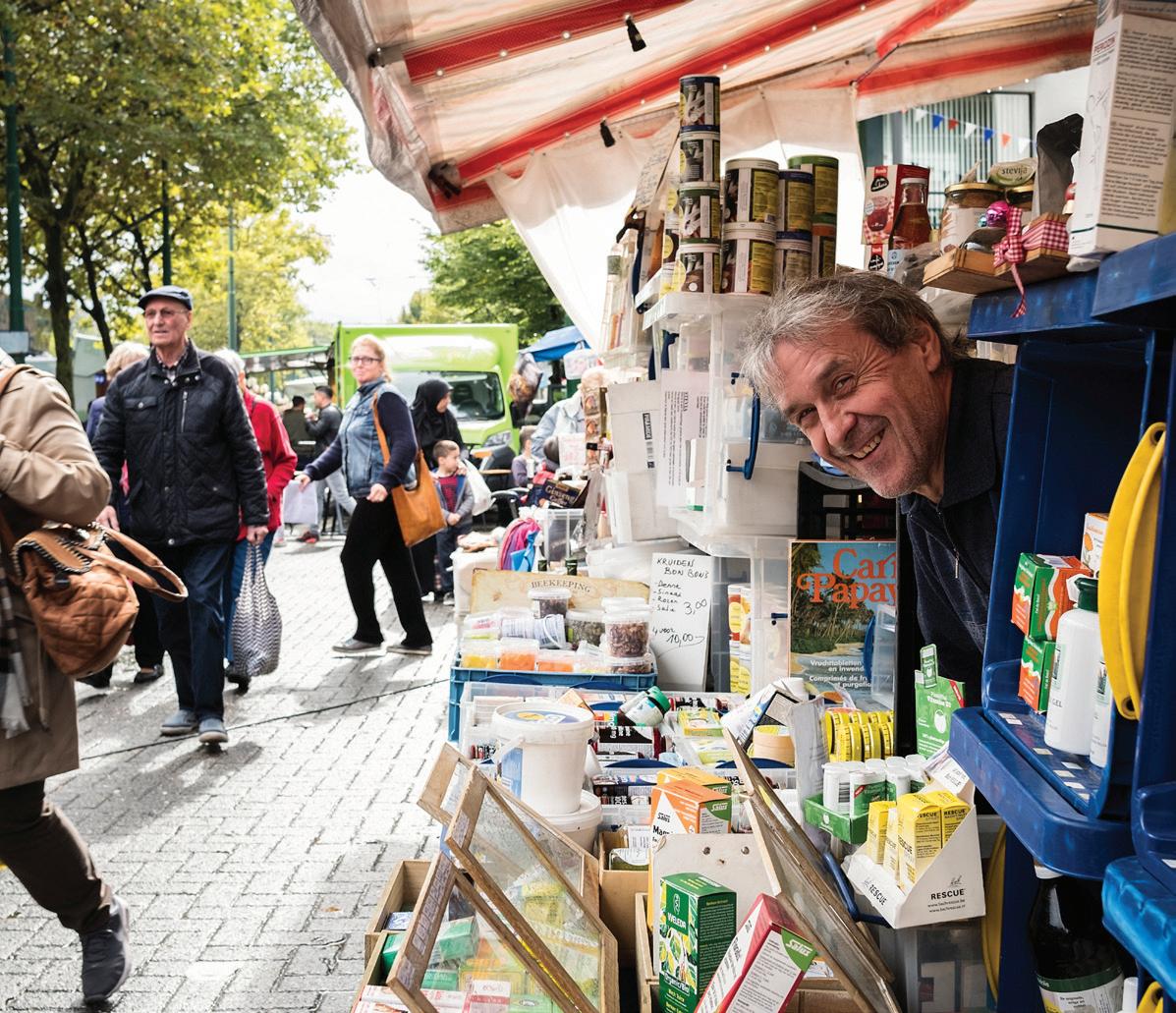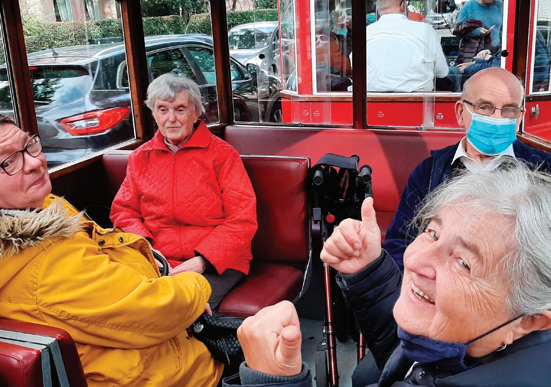 Nu en dan worden er contac ten gelegd: mensen spreken onderling af om iets te drin ken of te eten of ondernemen samen een activiteit. Eén keer is er zelfs al eens iets moois gebloeid tussen twee mensen. Wat ik ook al eens heb meege maakt, is dat mensen elkaar terugzien na jaren. Dat was een fijn moment! Vorig jaar was er een treintje ingelegd dat door Hoboken naar het Antwerpse Zuid reed. Senioren leerden er bijvoorbeeld de nieuwe wijk Groen Zuid of de Blikfabriek kennen, wat een revelatie was voor hen.”