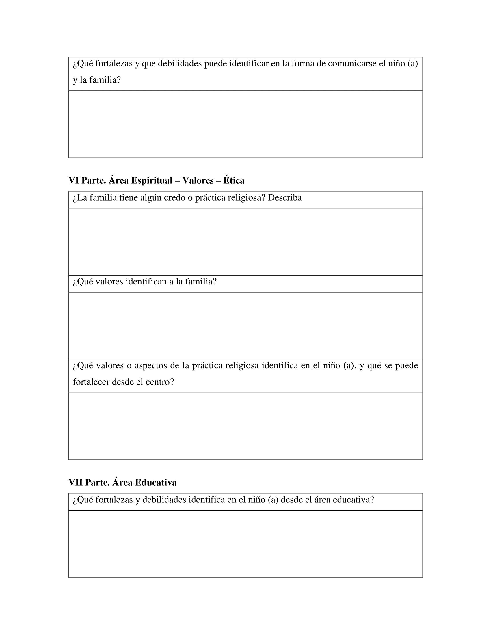 La entrevista tiene como objetivo identificar a través de las familias representantes las necesidades y aspectos importantes de las y los niños que ingresan a la guardería para tomar en cuenta durante su estadía, tomando en cuenta cada área del círculo de bienestar integral.