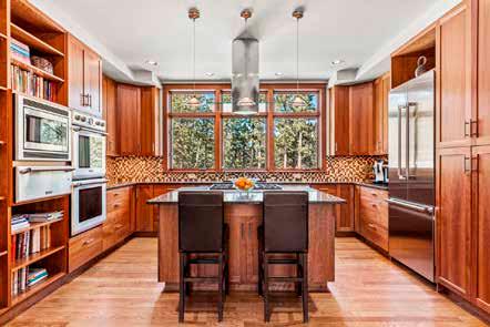 for an abundance of natural light and capture extraordinary views. This gorgeous home is rich in textures and finishes, with exposed wooden beams, pristine wood floors, cherry and fir woodwork, flagstone, slate, and natural tile. The outdoors come indoors as the grand living room opens to a vast, covered stone terrace with dazzling views as far as the eye can see! Your inner chef will love the gourmet kitchen with Thermador appliances, island with breakfast bar, cherry cabinetry, granite counters, and tile backsplash.