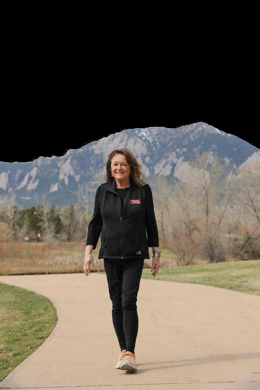 usually close to four miles a day, and she’s been doing it for over 30 years. It’s a testament to her deep affinity for her chosen home of Boulder.