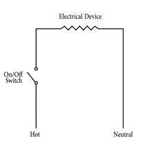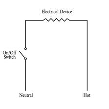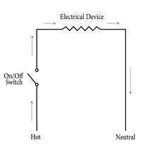The flow of electricity comes in through the hot wire, through the electrical device, and back to the electrical panel through the neutral wire.