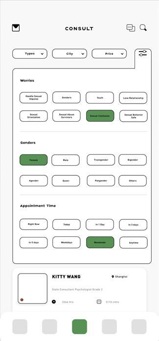 Consult Page: Offers consultations with professional psychologists or lawyers.
