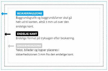 Tekst og grafikelementer bør have en sikkerhedsafstand på mindst 3 mm fra tryksagens endelige kant.