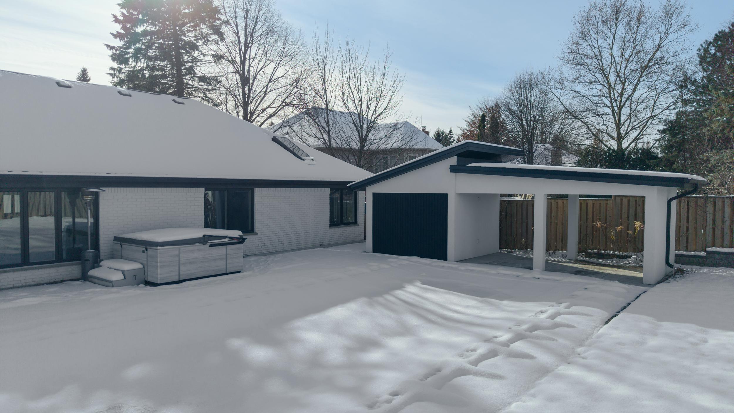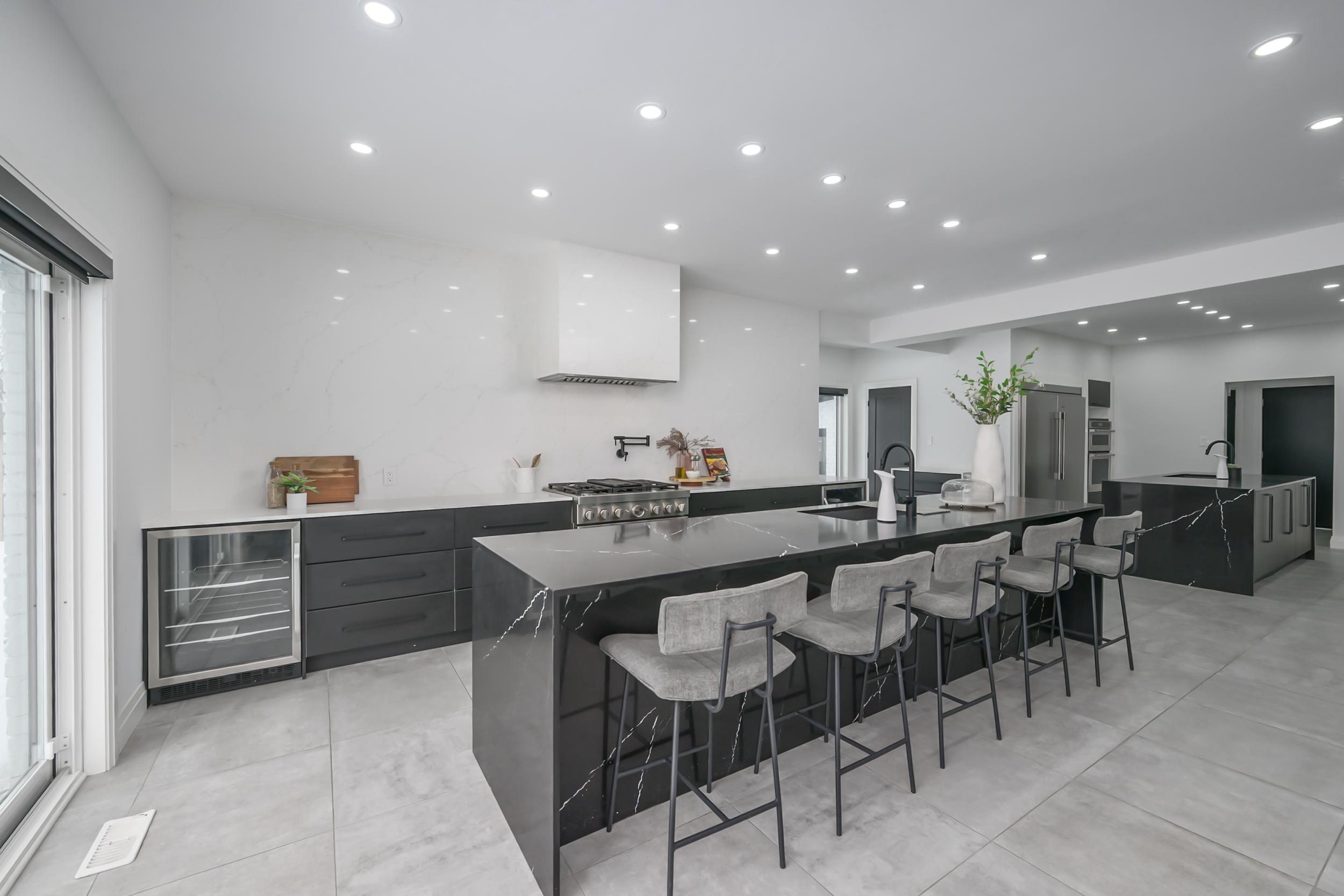 Set back on a 100-ft-wide, 0.40 acre lot along coveted Windermere Court West-an exclusive, traffic-calmed lane with homes on only one side overlooking the Elsie Perrin Estate-this fully transformed modern residence delivers 3,177 sq ft above grade and a seductive gallery-style aesthetic. The road is curbed, deadended, and services only the resident homes, enhancing peace and privacy. With Western University, University Hospital, and Medway Valley trails in walking distance, the setting is unmatched for buyers who value location. Inside, the main level flows with curated, art-gallery intention: newer windows and doors frame natural light, continuous flooring extends sight-lines, and a sculptural quartz fireplace surround and feature wall creates impact defining the stepped-down living room. The architectural kitchen performs as both workspace and showpiece, offering dual islands, extensive cabinetry, a porcelain/quartz feature wall, and a walk-in pantry.