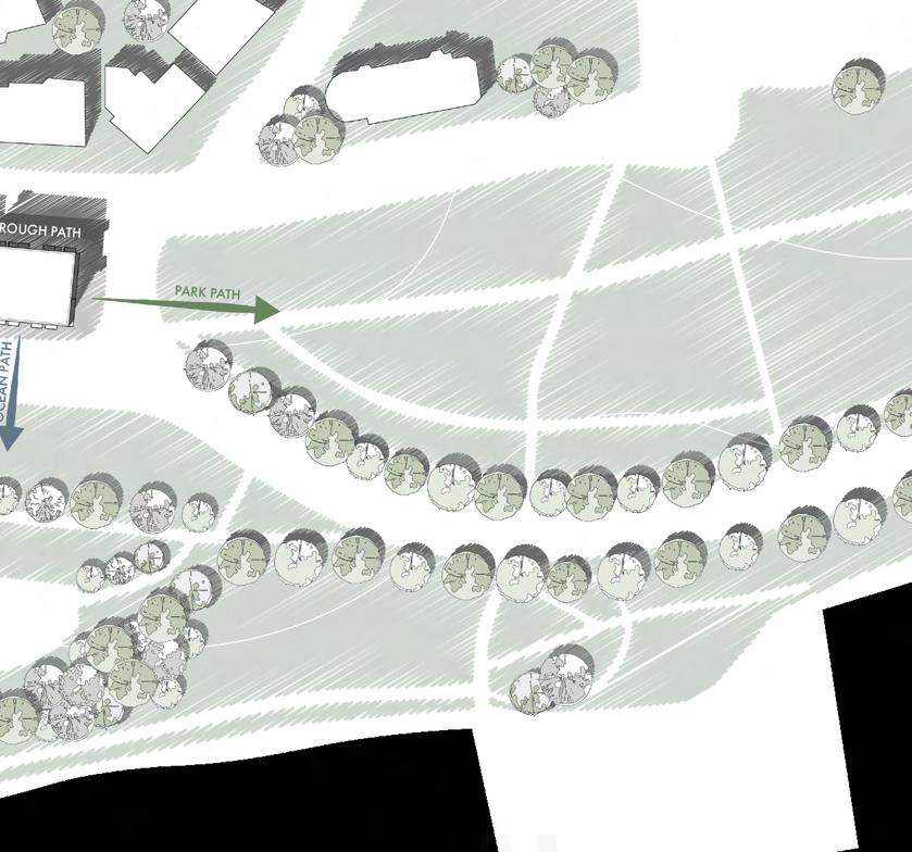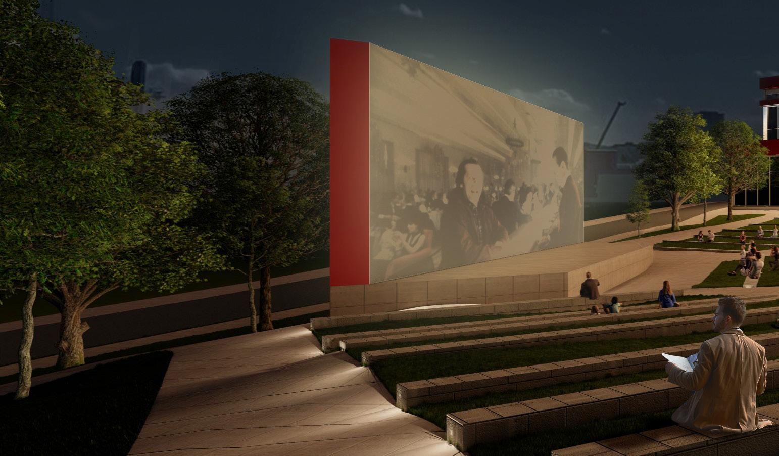 The site for this project was located in a pretty prominent area between Broadway Blvd. and Central St. The site is bordered by the Kauffmann Center to the north and Old Film Row to the southeast. On the actual site itself, there is a food truck park in the northeast to engage with the local economy. The south side of the side is occupied by the outdoor amphitheater for movie showings and performances. This southside connection to Film Row is very important because that is where most of the foot traffic is coming from.