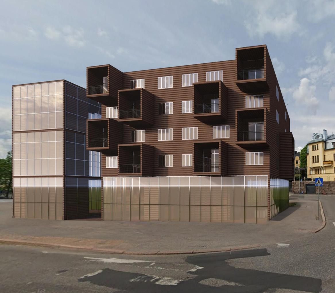 Taidekuutio is a sixteen-unit affordable housing complex. Its purpose is to provide low-cost living spaces to local Helsinki artists. The building includes a gallery for artists to display their work, a market for them to sell finished pieces, and a maker’s space for them to create endlessly.
