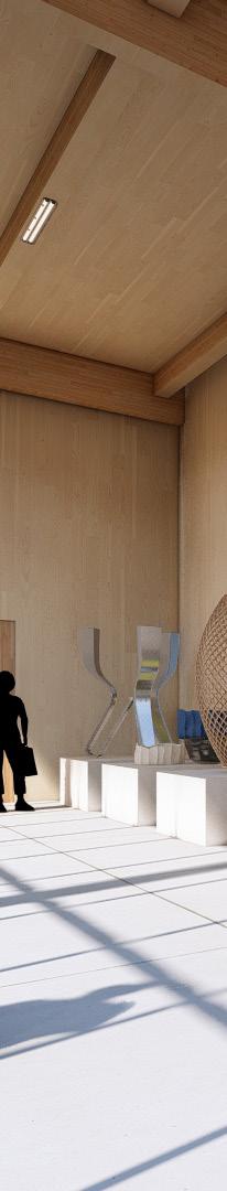The goal for the interior of the building was to create large open spaces with lots of exposed wood. Wood is a very important part of Finish building culture and it became an important part of my building aesthetic.