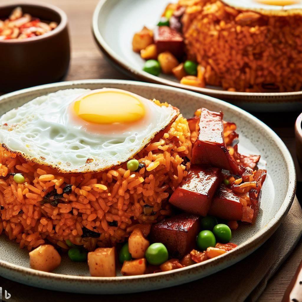 Luxurious Kimchi Rice Recipe with Spam, Bacon, and Grilled Chicken Steak