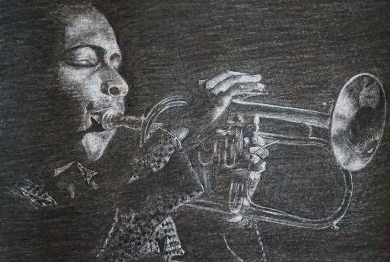 Trompettiste - Fusain négatif