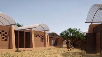 Inspiré de l’esprit communautaire du village traditionnel nigérian, Home to Hope naît de l’imbrication de dix maisons modulaires en terre dessinant le contour d’une place commune centrale.