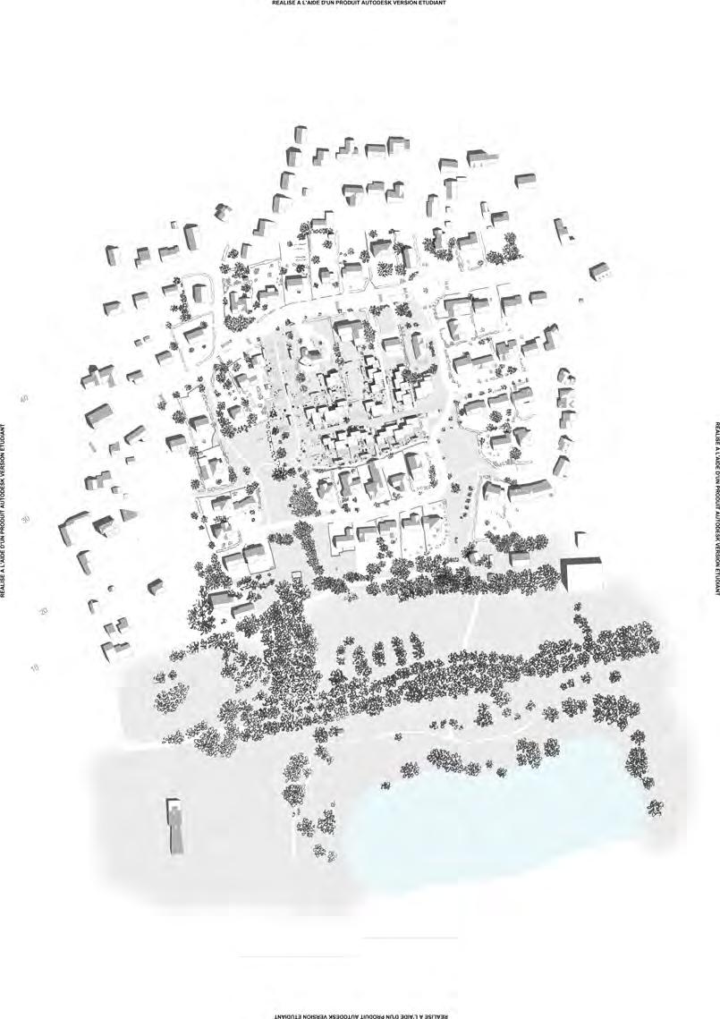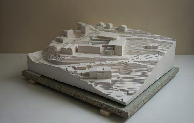 CONTRIBUTIONS PERSONNELLES - Réalisation d’axonométries schématiques du projet - Aménagement et ameublement des plans de niveaux, des coupes transversales et longitudinales - Réalisation d’une maquette impression 3D de projet, au 1/1000, insérée dans une maquette moulée en plâtre