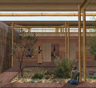 landscape. The facades are punctuated by a set of bamboo post-beam structure, supporting the main closes the different activity spaces, allowing complete this system with high openings in each of the interior spaces.