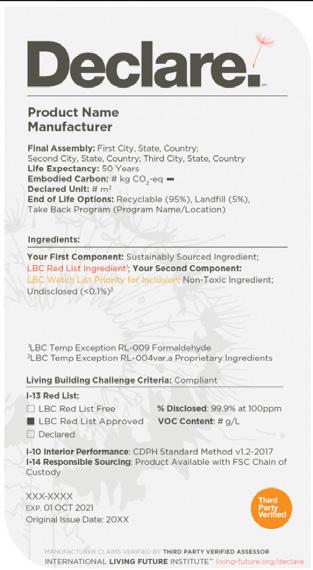 Like a nutrition label for furniture products, Declare labels list product “ingredients” and flag dangerous chemicals.