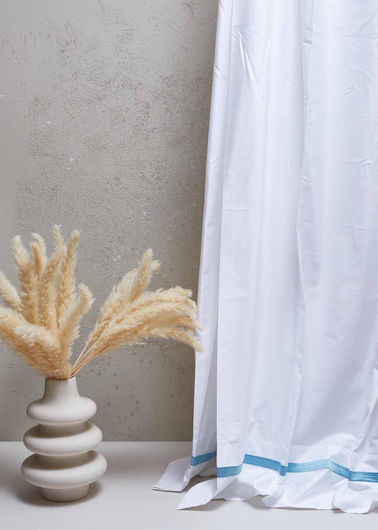 Tailored in-house of luxurious pothos cotton sateen for a smooth and elegant drape, this is our proposal for a super-styled bed. It's both timeless and versatile – a good dose of white keeps things clean and crisp, a hint of plethora color means you can layer with ease. Go bold with more pattern in a complementary accent, or stay perfectly coordinated with same collection. The palette ties back to many pieces in our collection, giving you endless combinations to suit your mood and creativity.