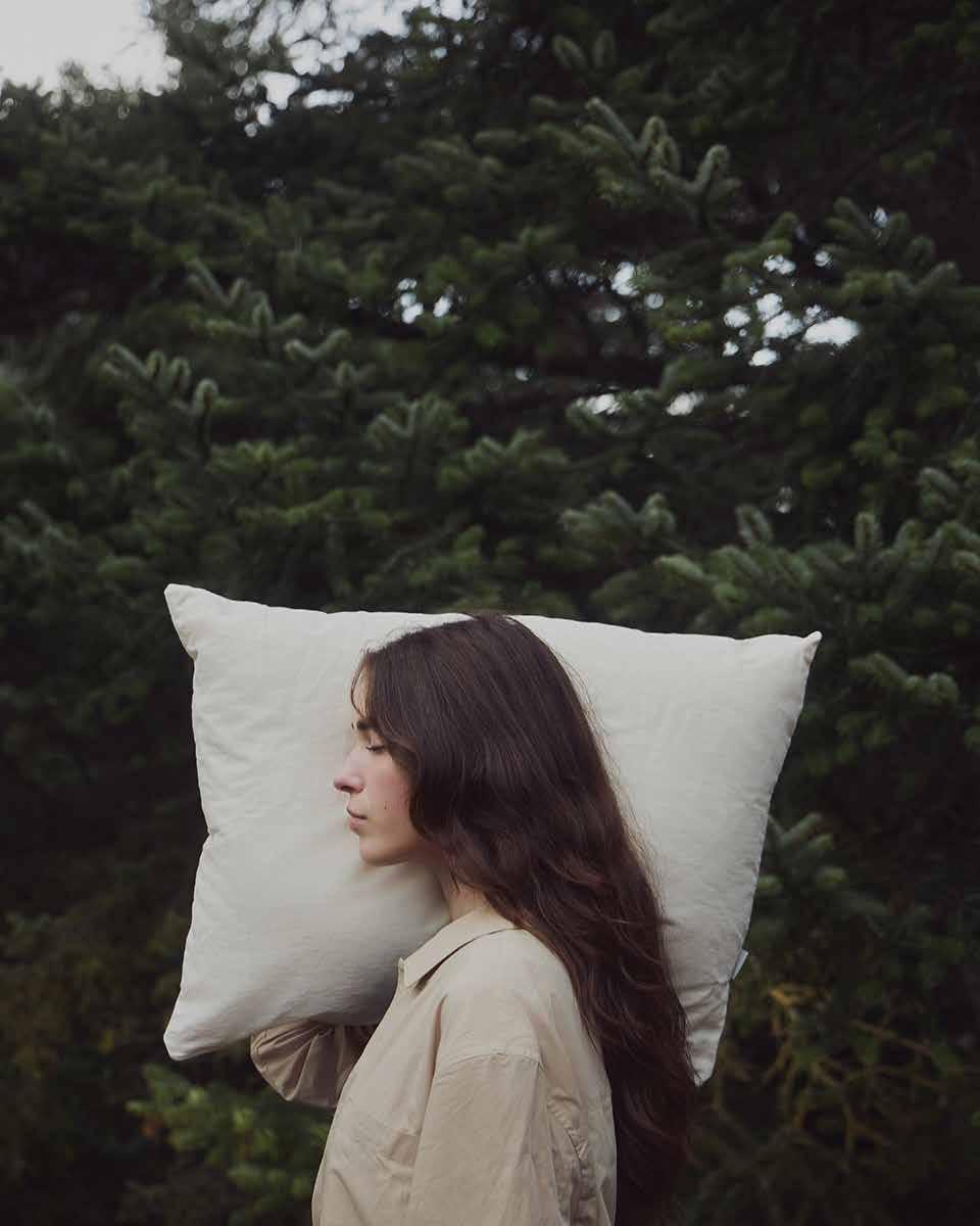 Over time and with use, the natural cotton will compress and conform to your shape and not fluff back into the original ‘loft’. Pillows cannot maintain a consistent form unless man-made fibres and chemicals are added.