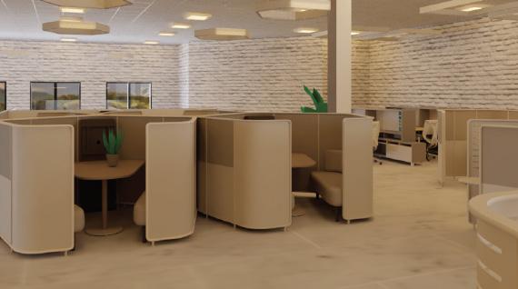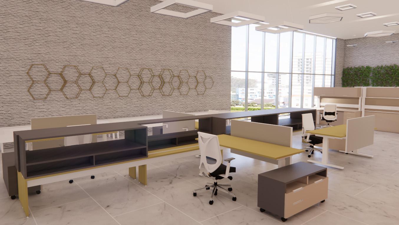 The design layout will place emphasis on circulation by inserting these geometric units in large open spaces to guide flow through areas of both work and play. The design will focus on the usage of solid surfaces to make physical cleaning easier. This will also improve the mentality of employees and customers. We will be focusing on incorporating light colours into the design as this will keep the office/showroom airy, clean and