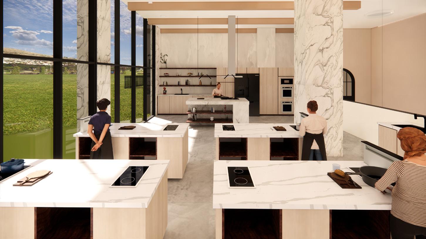 The room is equipped with six islands that fit two people at each station. The customers will be able to learn from a certified chef who will be instructing at the front of the room.