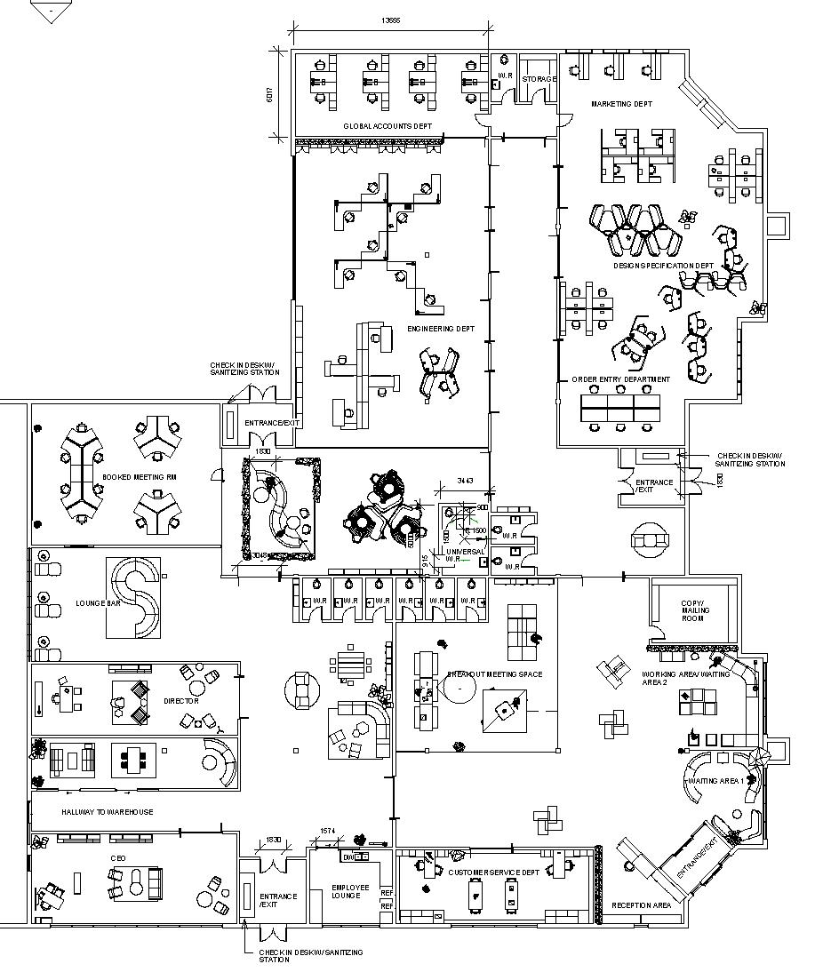 The new office and showroom of Teknion furniture will consist of many innovative components. The conceptual design behind Teknion’s new facility will focus on pandemics, cleanliness and social distancing. The design will require many different technical aspects to improve the quality of space, life and health while working in the office.