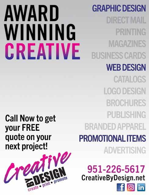 14 CORONA Business News CORONA CHAMBER www. My Chamber.org November/December 2022 Chamber Marketplace JOIN THE CHAMBER OR REFER A MEMBER AND HAVE YOUR AD PLACED HERE! (951) CHAMBER | INFO@MYCHAMBER.ORG Improving the Way Your Business is Seen Corona / riverside Increase Your Market Reach Today! 951-743-7377