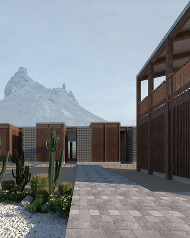 Casa SC es un proyecto en San Carlos, Sonora, diseñado para alquiler vacacional y eventos sociales La casa se ha construido en un solo nivel para no obstruir las vistas del paisaje, con volúmenes conectados por un pasillo