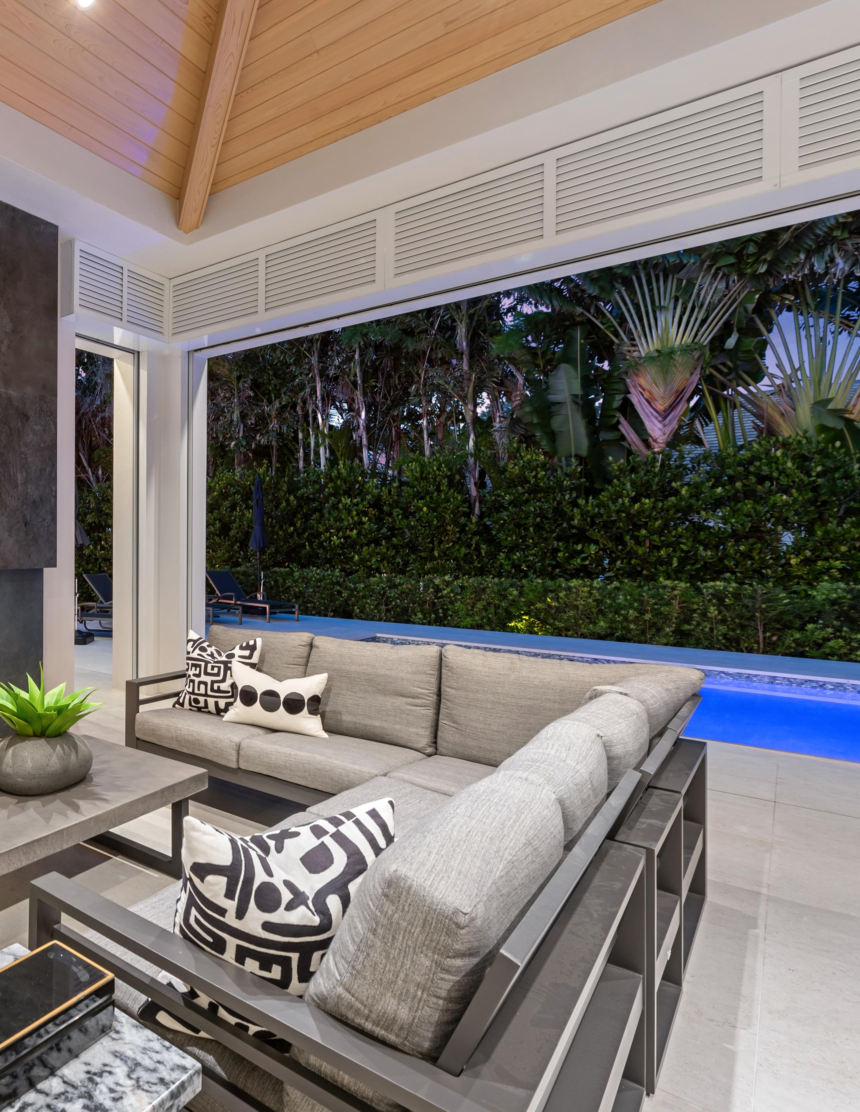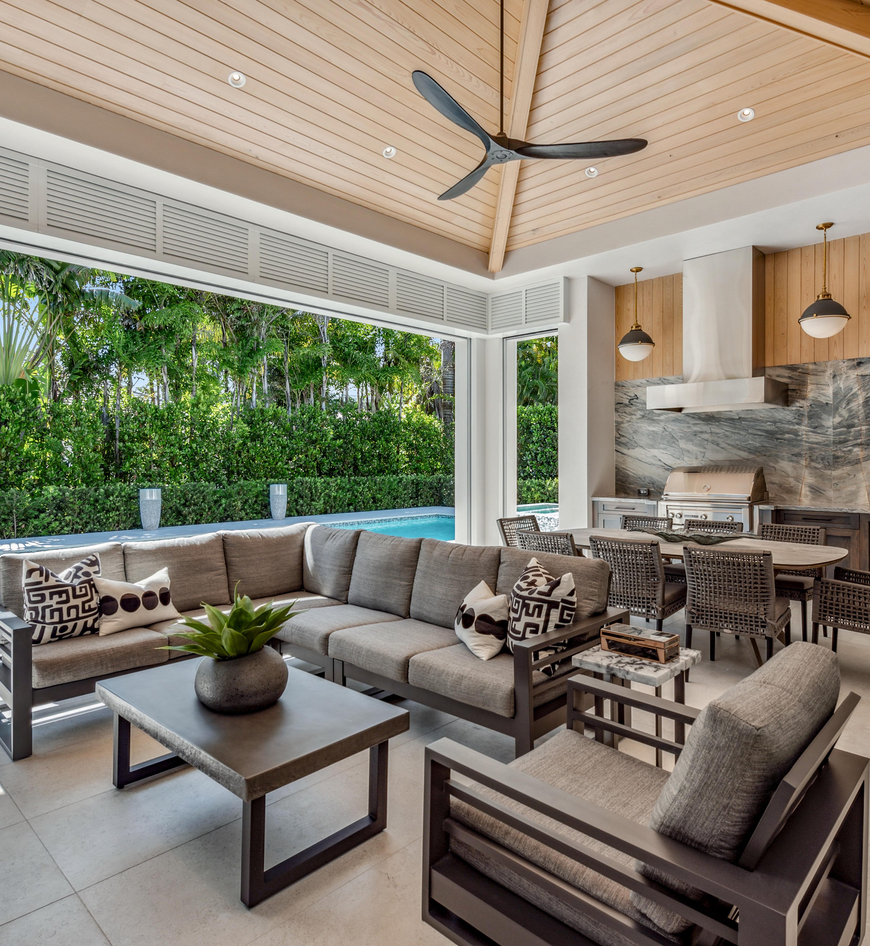• Stacking nano-doors open to the covered lanai creating the perfect blend of indoor and outdoor living