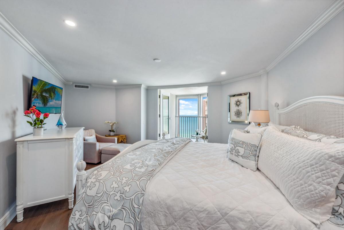 ¨ Guest Suite Three features a queen bed, seating area, and gulf views. This bedroom also features a premium ensuite bathroom and walk-in closet.