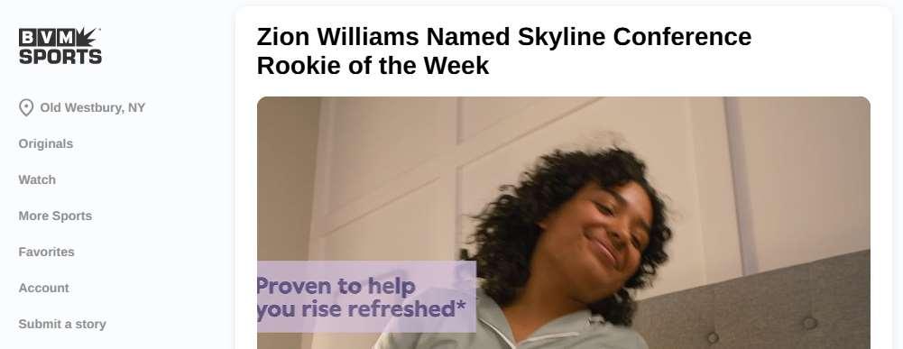 Available online at: https://bvmsports.com/2025/02/19/zion-williams-named-skyline-conference-rookie-of-the-week/