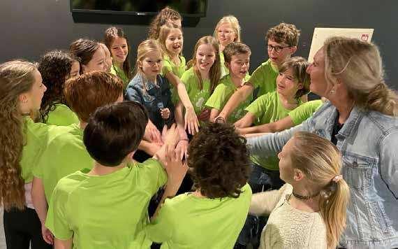Vlak voor het optreden houden leerlingen van de Zaanenschool hun handen tegen elkaar en roepen de groepsyell.