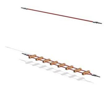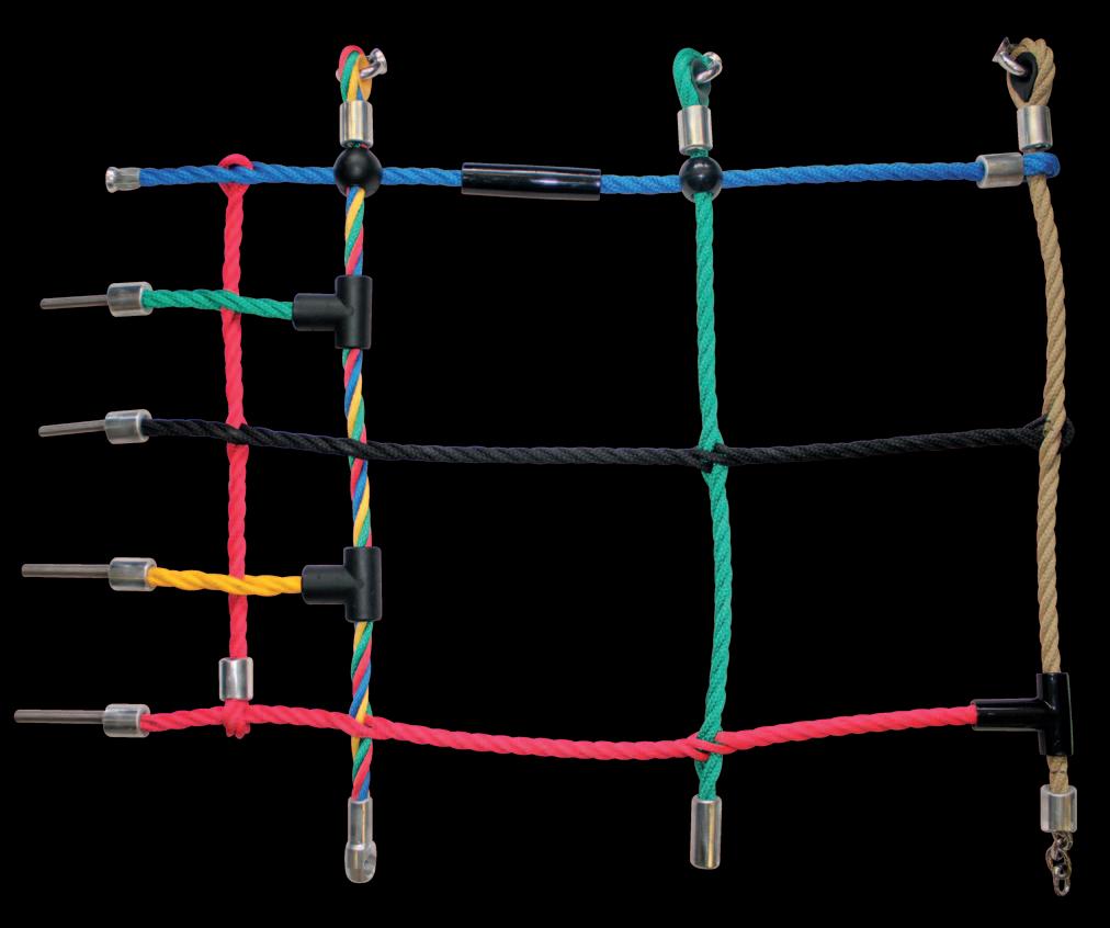 •Seile aus 6-litzigen 18 mm Herkules-Seilen, Schwebeband 20 mm mit speziellen Aluminiumpressklemmen (Seilfarbe frei wählbar)