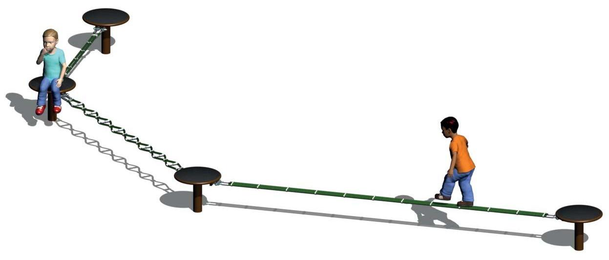 Dies alles und noch viel mehr bietet das Abenteuerland! Die Adventure Park Serie bietet unbegrenzten Spielspass durch unzählige, spannende Einzelelemente. Das modulare Niedrigseilgarten-System kann vielfältig kombiniert und erweitert werden, ob mit der Schwebeband-Serie oder sogar mit den Klassikern unter den Seilspielgeräten, den Mittelmastgeräten und den Fachwerkgeräten.