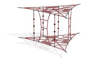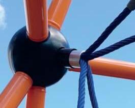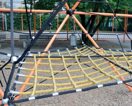 •Die Seilverbindungselemente aus Aluminium werden hydraulisch verpresst und bilden so ein Verbindungselement, welches problemlos hohe Seilkräfte übertragen kann und ein Höchstmass an Spielsicherheit bieten. Die spielsicheren und griffsympathischen Verbindungsstellen gliedern sich auch optisch hervorragend ins Gesamterscheinungsbild ein.