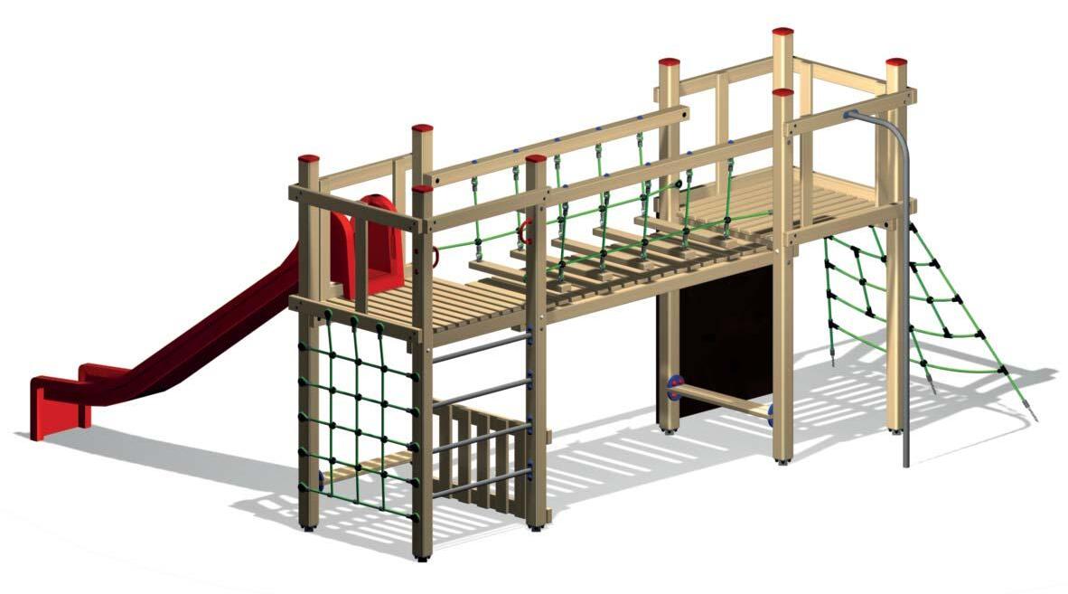Im Alter von 3-6 Jahren möchten Kinder zunehmend körperlich herausgefordert werden und ihre Geschicklichkeit unter Beweis stellen. Am liebsten Klettern wie die Grossen. Die Bambino-Elemente überbrücken hierbei den Sprung von Kleinkind- hin zu Kinderspielgeräten. Mit einer maximalen freien Fallhöhe von nur 60 cm, aber gleichzeitig dem grossen Angebot an Modulen, ist das eine ideale Kombination.