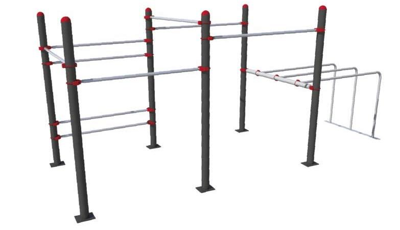 •Der feuerverzinkte und zusätzlich farbpulverbeschichtete Stahlpfosten Ø 168 mm wird einbetoniert und bietet Anschlussmöglichkeiten für verschiedenste Adventure Park Elemente.