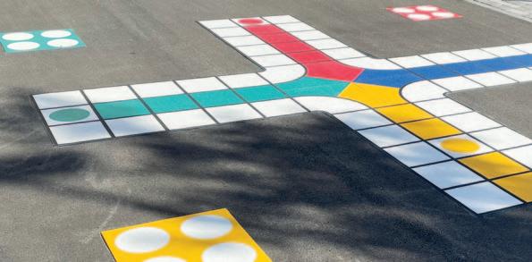 Dekorative und kreative Markierungen im öffentlichen Bereich für die Gestaltung und Planung von Schulhausplätzen, Parks oder Stadtteilen.