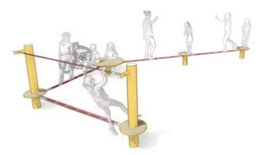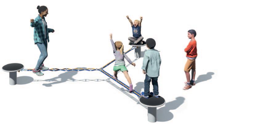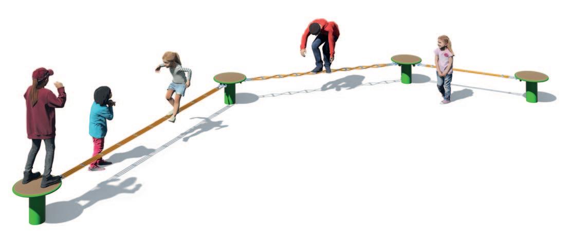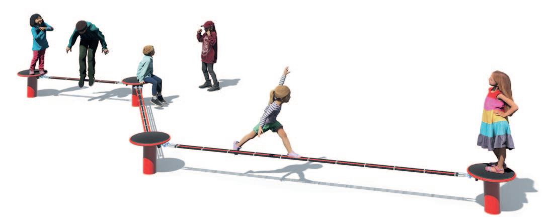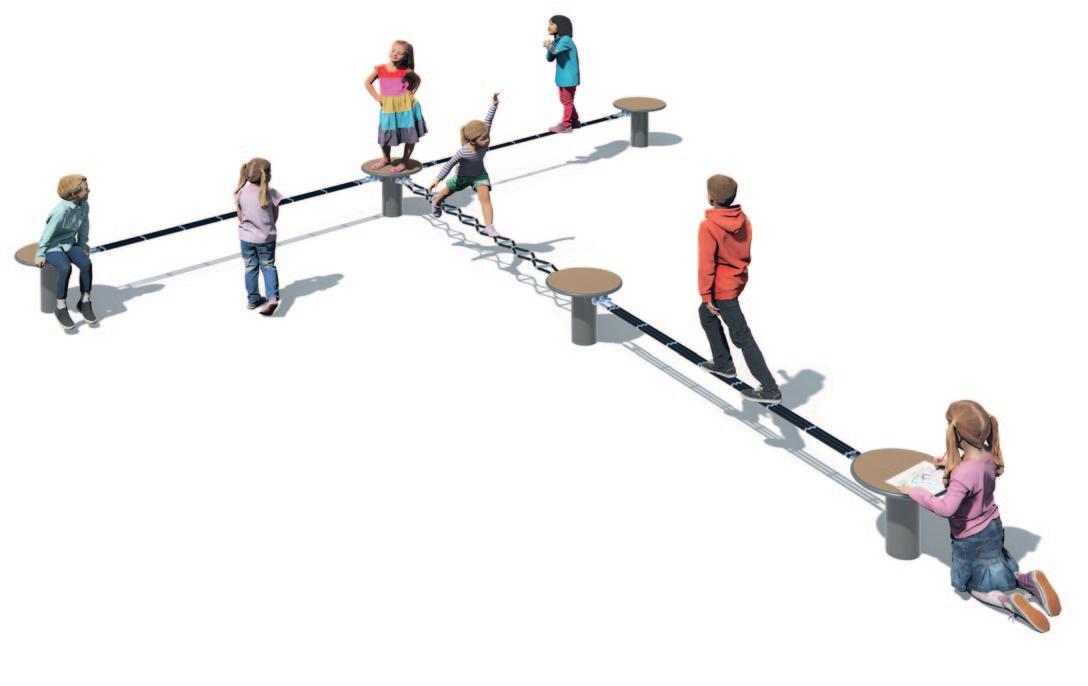 Seilspielgeräte stellen aufgrund ihrer permanenten Instabilität eine besondere Herausforderung dar –für Jung und Alt. Durch das Balancieren auf den Schwebeband-Spielkombinationen werden Gleichgewichtssinn, Geschicklichkeit, Körperbeherrschung und Konzentration auf spielerische Art und Weise trainiert sowie die wichtigste Haltungsmuskulatur gestärkt. Gleichzeitig laden die Seil- und Podest-Elemente auch zum Sitzen ein und werden zu Kommunikationspunkten.