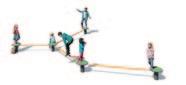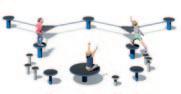 Die «Flux Variante 1» mit 3 Podium circle S vereint drei Schwierigkeitsgrade in einer einzelnen Anlage. Durch die geschickte Zusammenstellung der Schwebe band-Varianten «Original», «Duplex» und «Cross» wird ein äusserst hoher AnlagenSpielwert garantiert, der eine breite Altersspanne anspricht.