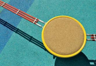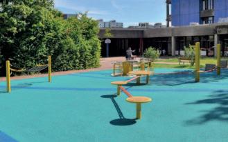 Durch die geringe Einbauhöhe von nur 47 cm über der Spielebene kann der Fallschutz frei gewählt werden.