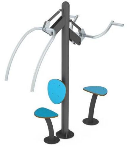 An der Brust- und Rückenpresse können 2 Personen gleichzeitig trainieren, Arme strecken und beugen und den Rumpfbereich während der Übung stabil halten.
