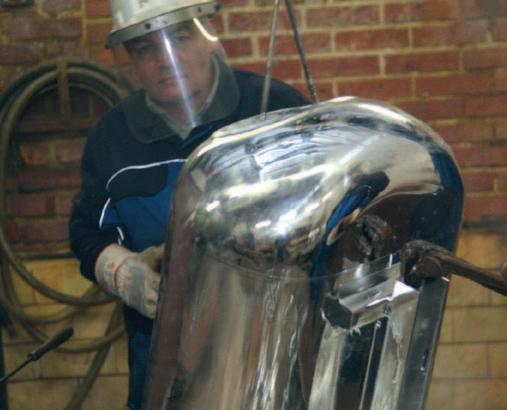 • Tür mit Edelstahlscharnieren am Behälter vernietet und mit Dreikantverriegelung gesichert