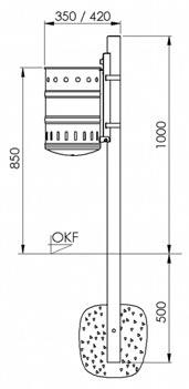 735.703.800 Rund-Abfallbehälter mit Pfosten, 35 Liter, feuerverzinkt 13.5 kg 150 × Ø 34 × 42 cm