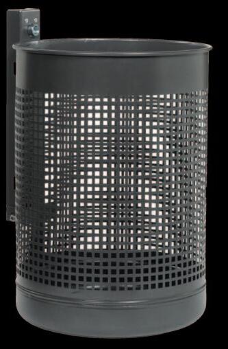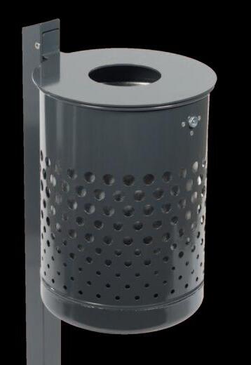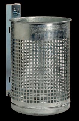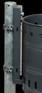 • offener Rund-Abfallbehälter mit Befestigungsschiene zur Wand- und Pfostenbefestigung