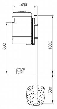 735.703.800.1 Rund-Abfallbehälter mit Pfosten, 35 Liter, farbig 1 13.5 kg 150 × Ø 34 × 42 cm