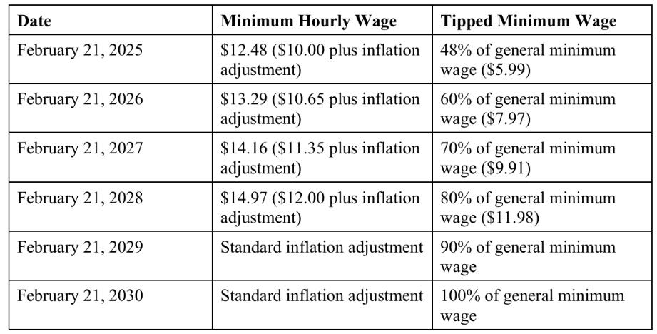 The chart to the right is the new schedule for the minimum wage law in Michigan moving forward.