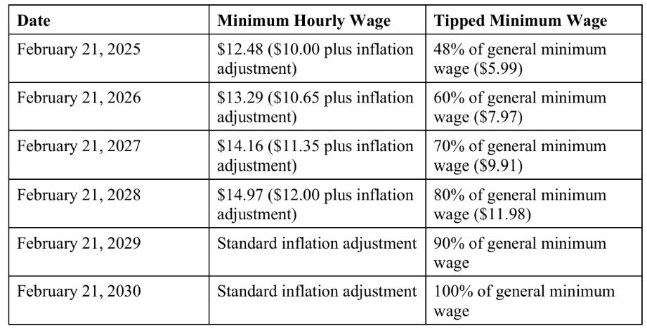 The following chart is the new schedule for the minimum wage law in Michigan moving forward: